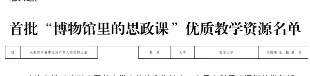 周瑞瑞、王楠、董昊老师的教案《从新四军看中国共产党人的信仰力量》成功入选。
