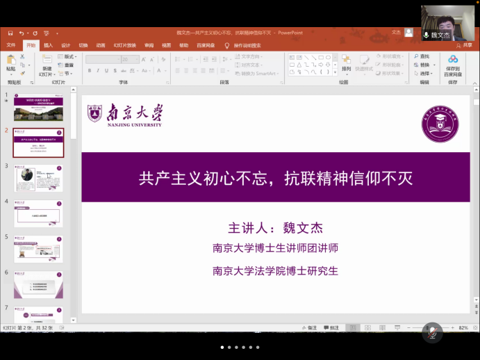 2020级博士研究生魏文杰作“共产主义初心不忘,抗联精神信仰不灭”主题党史宣讲。