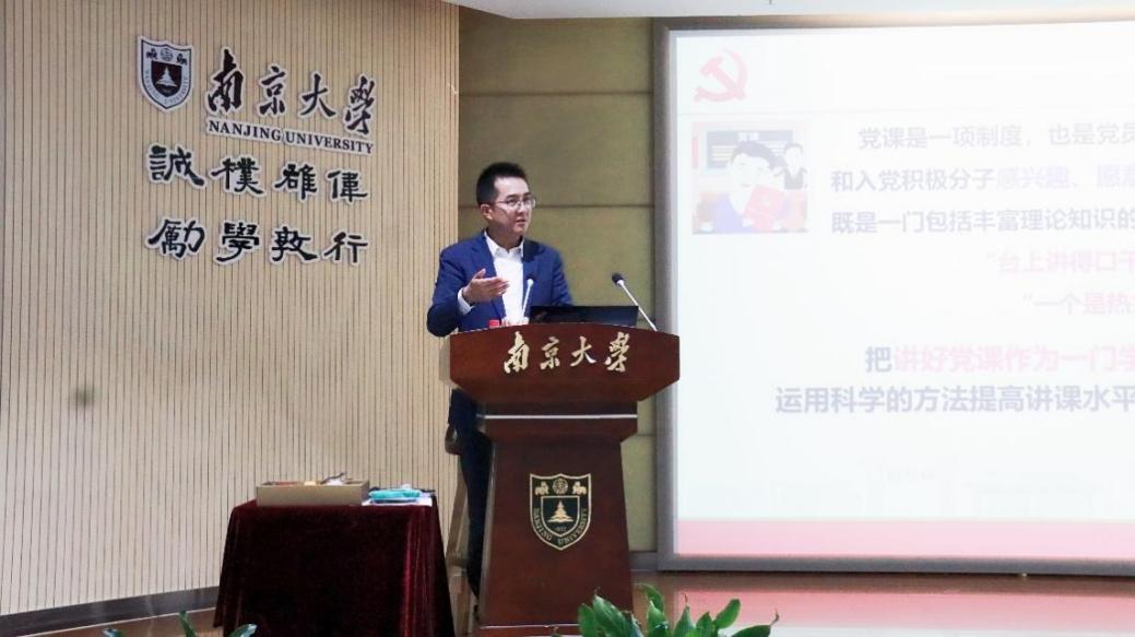 最后,校党委组织部副部长印兴波对本次培训讲座进行总结发言。他指出,两位老师在讲课风格上虽有区别,但从党课理论与授课技巧到现场展示,前后呼应,既是一堂理论解读课,也是一场现场展示课。他充分肯定了两位老师深厚的学术修养和将党课学理化、生动化的教学功底。同时他对参赛同学提出殷切期待,希望各支参赛队伍在接下来的复赛环节认真准备、出色发挥,充分展现南大青年的风采,也希望学生微党课大赛的开展能够起到传播信仰之火、固牢理想之根、解除认知之惑的现实作用。