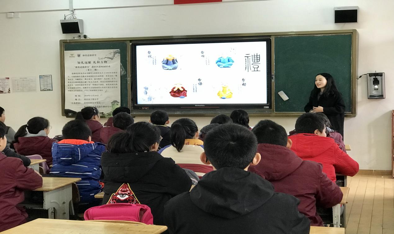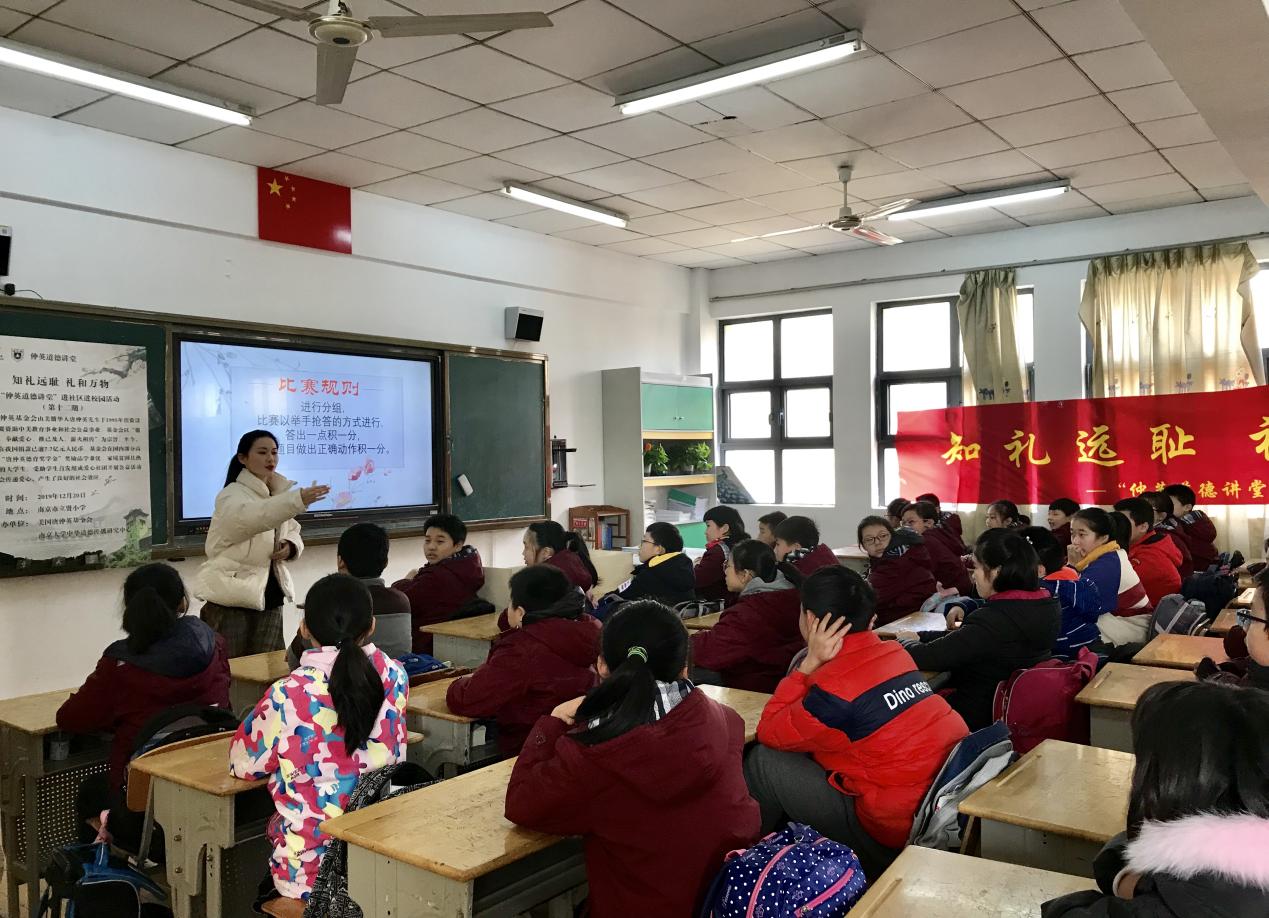 本次活动分为知识讲授和现场互动两个环节,以引导学生将理论与实践相结合,充分发挥中华优秀传统文化的化育作用。下午一点,活动在南京市立贤小学六年级(4)班正式开始。首先,主持人杨继水同学介绍了此次活动的宗旨、主题以及流程,并对大家的参与表示衷心的感谢。