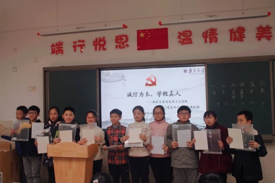 活动的最后,进入颁奖环节。小组成员给每一个学生都颁发小礼品并合影留念,着重表扬了孩子们的积极表现,并提出未来在南大相会的美好期许,孩子们也纷纷表示以后将坚持践行诚实守信的美好品德,做“信”文化的传承者。