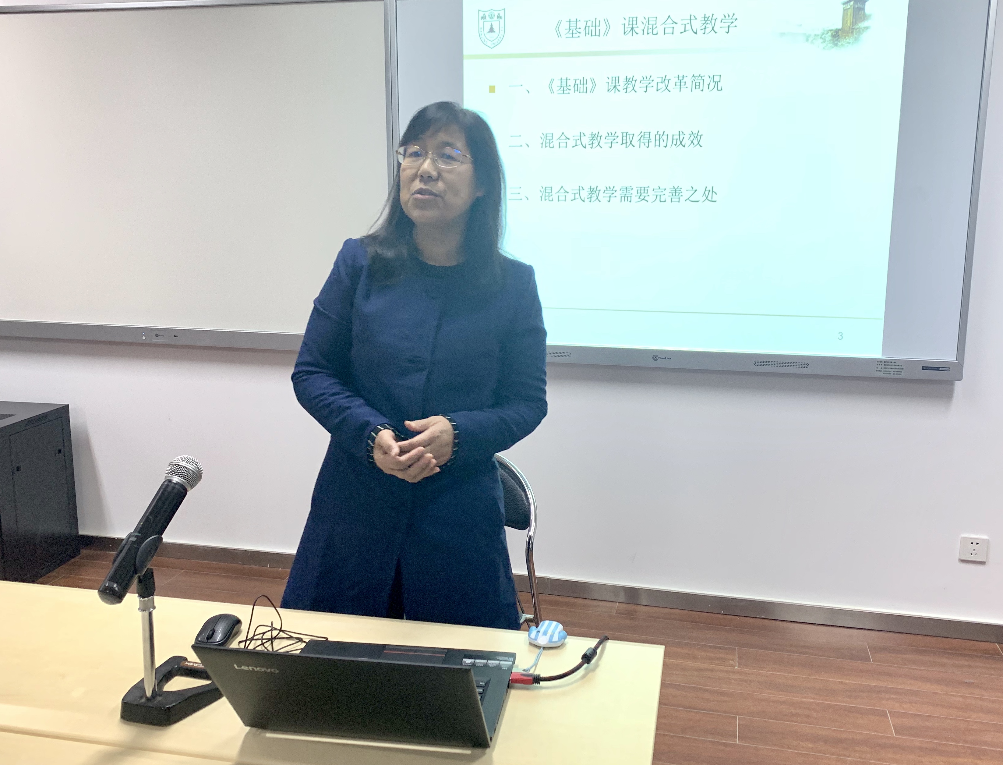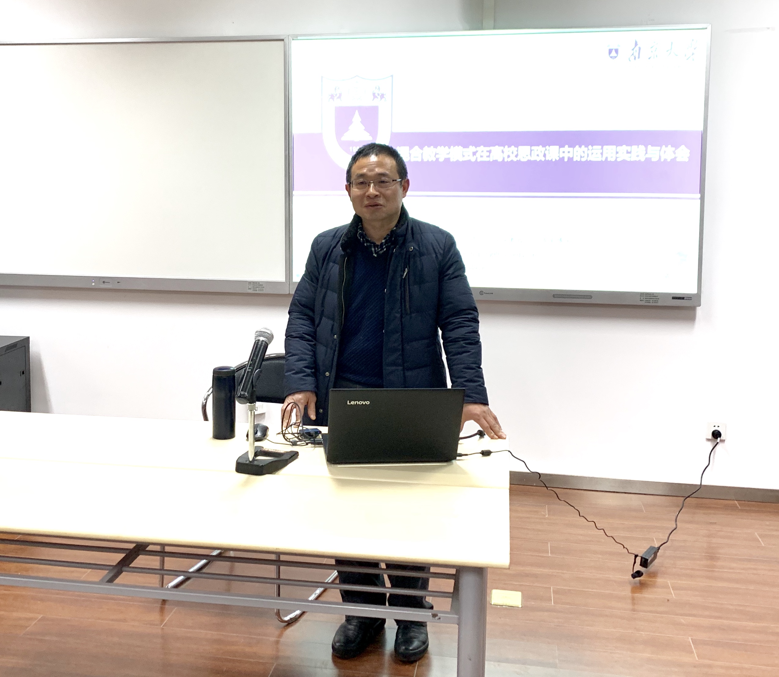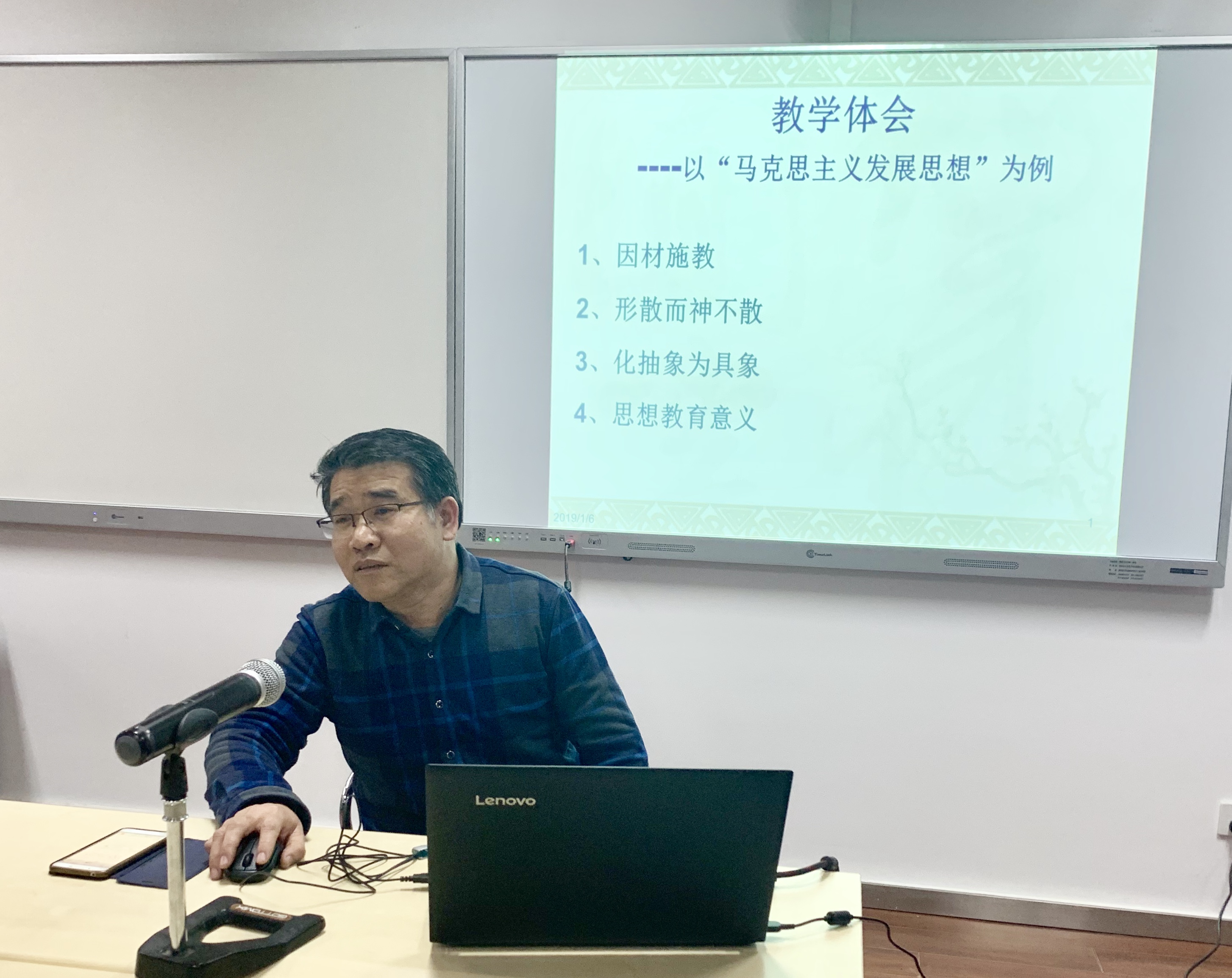 教师代表就自己的教学经历详谈相关课程的教学及改革经验。沈伯平教授以“混合教学模式在高校思政课中的运用实践与体会”为主题,展现混合教学模式在《毛泽东思想与中国特色社会主义理论体系概论》课程中的现实运用。王锁明教授以“马克思主义发展思想”为例,结合教学案例,从因材施教、形散而神不散、化抽象为具象、思想教育意义四个方面畅谈教学体会。李喜英教授就《思想道德修养与法律基础》课程的混合式教学分享了自己的教学经验,同时指出,教师队伍建设需要扬长避短,翻转课堂本身的内容以及评分政策有待继续更新与细化,实践教学模式需进一步探索。