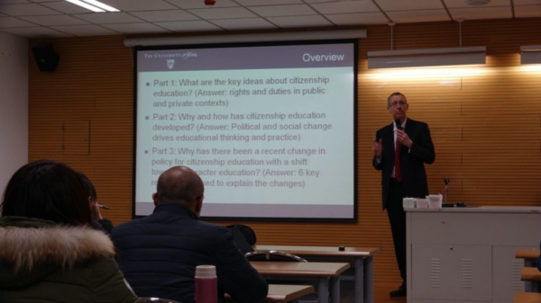 的特聘专家;他曾出版了15本专著,发表了多篇学术论文;他同时任教本科、硕士和博士课程;他曾是《公民教育教学研究》的主编,现在是副主编;他的主要研究方向为公民教育、全球教育、全球公民教育、历史教育、社会科学教育等。在公民教育相关问题的讲座中,戴维斯教授主要从公民教育的关键内容,公民教育的背景环境以及公民教育向品格教育的转化三个方面为我们介绍了英国公民教育。