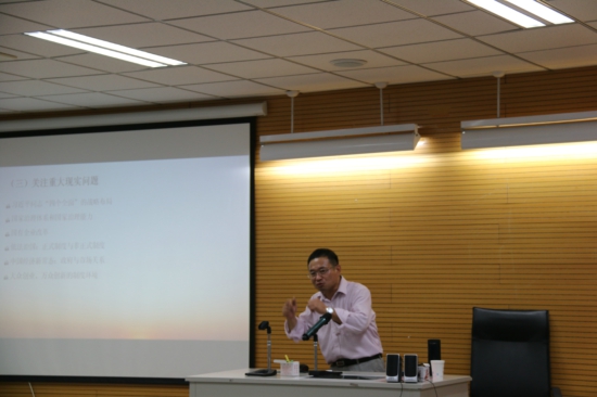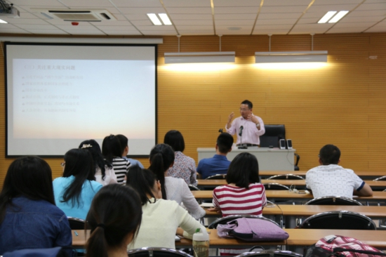 接下来就具体的论文写作,沈伯平教授讲了绪论、导论的写作,尤其强调了综述的重要性,并结合具体的问题,着重讲述了论文写作过程的注意事项及注释和参考文献的标注等。时政的结合和学术问题的探讨贯穿其中,其中对具体经济问题的分析,深入简出,鲜明活泼,不失趣味性又使同学们受益匪浅。