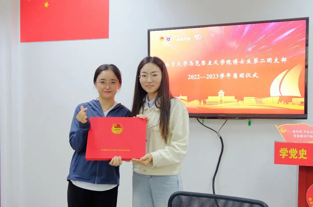 团员青年在纪念碑前重温入团誓词,感悟入团初心;团支委介绍2022—2023学年离团同学的基本情况,并为其颁发《离团纪念证书》,鼓励大家离团不离心、退团不褪色;2022—2023学年离团同学李新蕊、潘瑶、姚宇琦、谢瑞丰现场分享“我和共青团的故事”。
