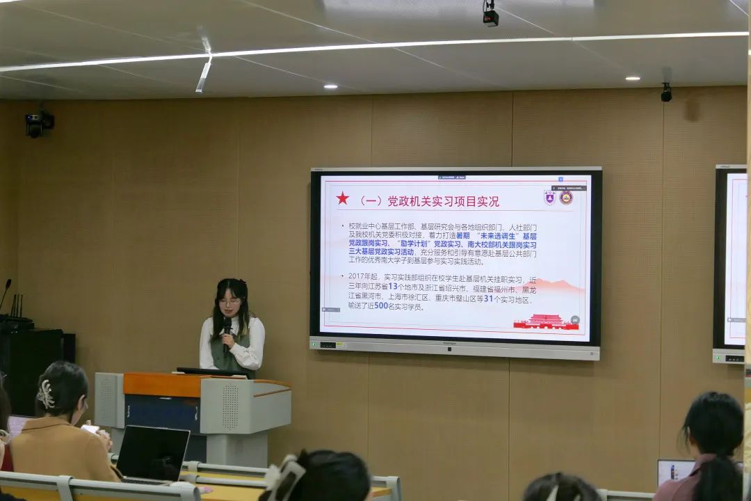 首先,由姜兴黔同学进行暑期党政机关实习项目介绍。校就业中心基层工作部、基层研究会与各地组织部门、人社部门及幸运飞艇开奖官网