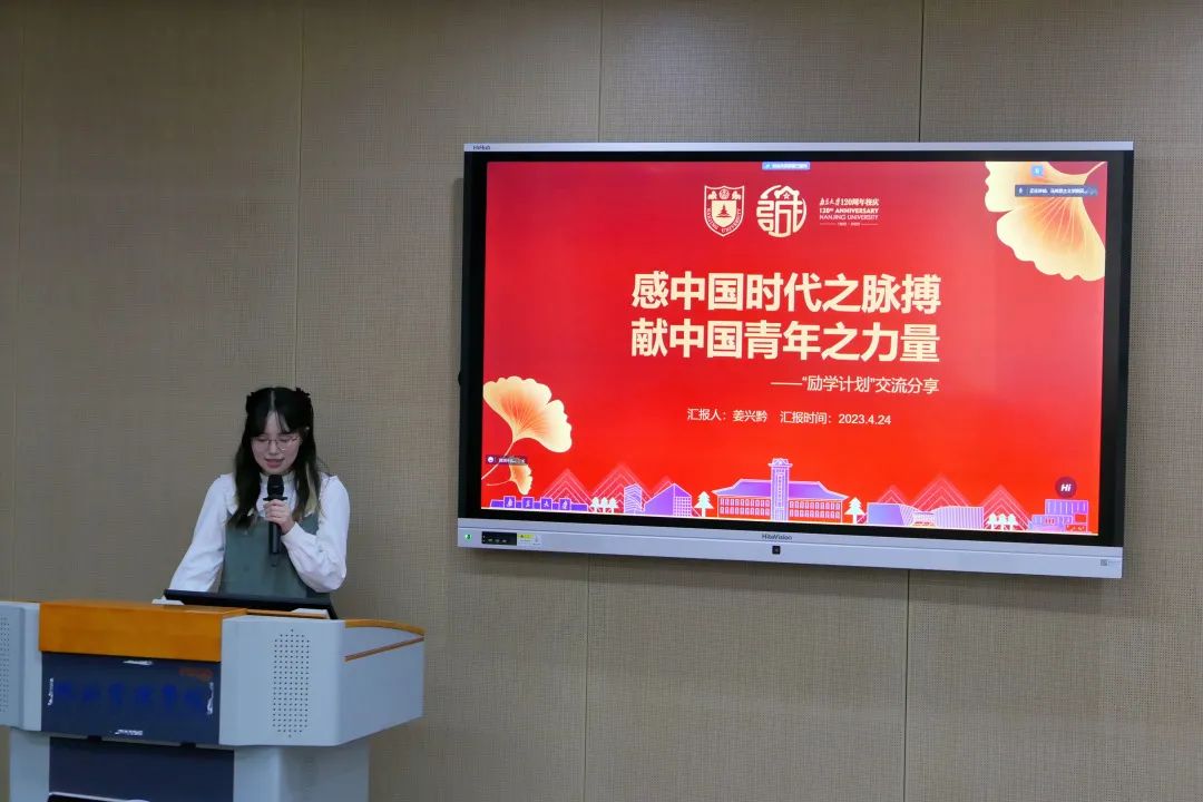 姜兴黔同学向大家分享了自己参与“励学计划”党政实习的经验,她利用暑期时间在四川南充林业局开展了实习。首先,她为大家介绍了项目时间、选拔依据和项目具体内容。此外,她还向大家介绍了工作地点南充市以及当地林业局的具体情况,说明了办公室助理岗位的具体职责,并展示了工作场景的照片。接着,她详细介绍了个人暑期实习的工作情况。在日常的工作中她夯实了基础功力,在参与会务宣传工作中她提升了工作格局,实习期间产出多份公文稿件,受到上级一致认可。在阆中湿地与金城山林场的走访调研中,她切实了解监督基层绿地青山措施的执行情况。最后,她号召大家自觉担当重任,深入基层一线,让青春在实现中华民族伟大复兴的中国梦中绽放异彩。