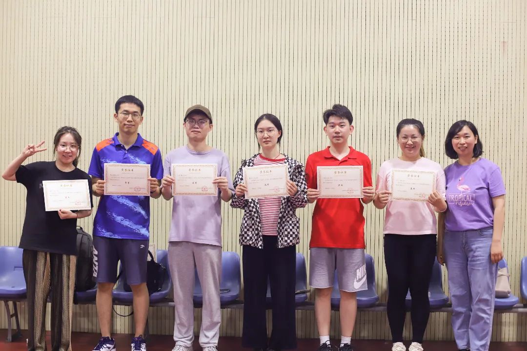 研究生会主办,共有24名选手报名参赛。比赛分为男单、女单、男双、混双四个比赛项目,以淘汰赛形式进行,通过抽签决定每轮对手。比赛开始前,各位选手已经摩拳擦掌,跃跃欲试,想在乒乓球桌上展示一番风采。“乒乓”声与加油呐喊声此起彼伏,经过三个小时的激烈对战,最终决出了各组别冠亚季军。