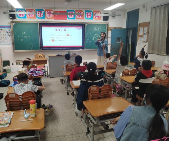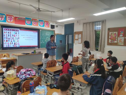 第一实验小学,马克思主义中国化研究专业21级硕士生贺虹莎讲师为同学们带来了以《中华民族一家亲》为题的精彩课程。马克思主义中国化研究专业22级硕士生何雨潼、毛婉婷担任本次课程的助教。