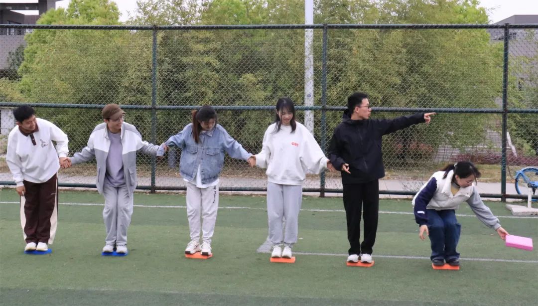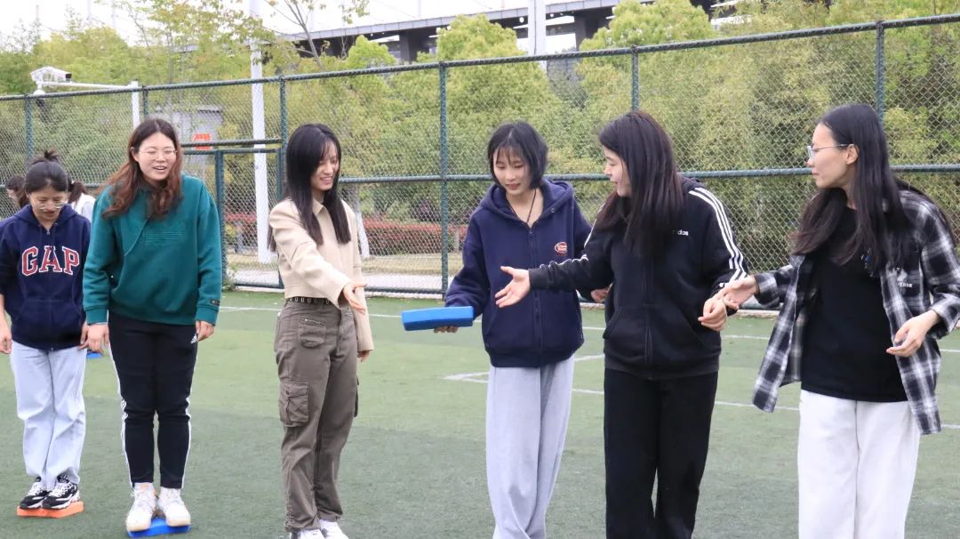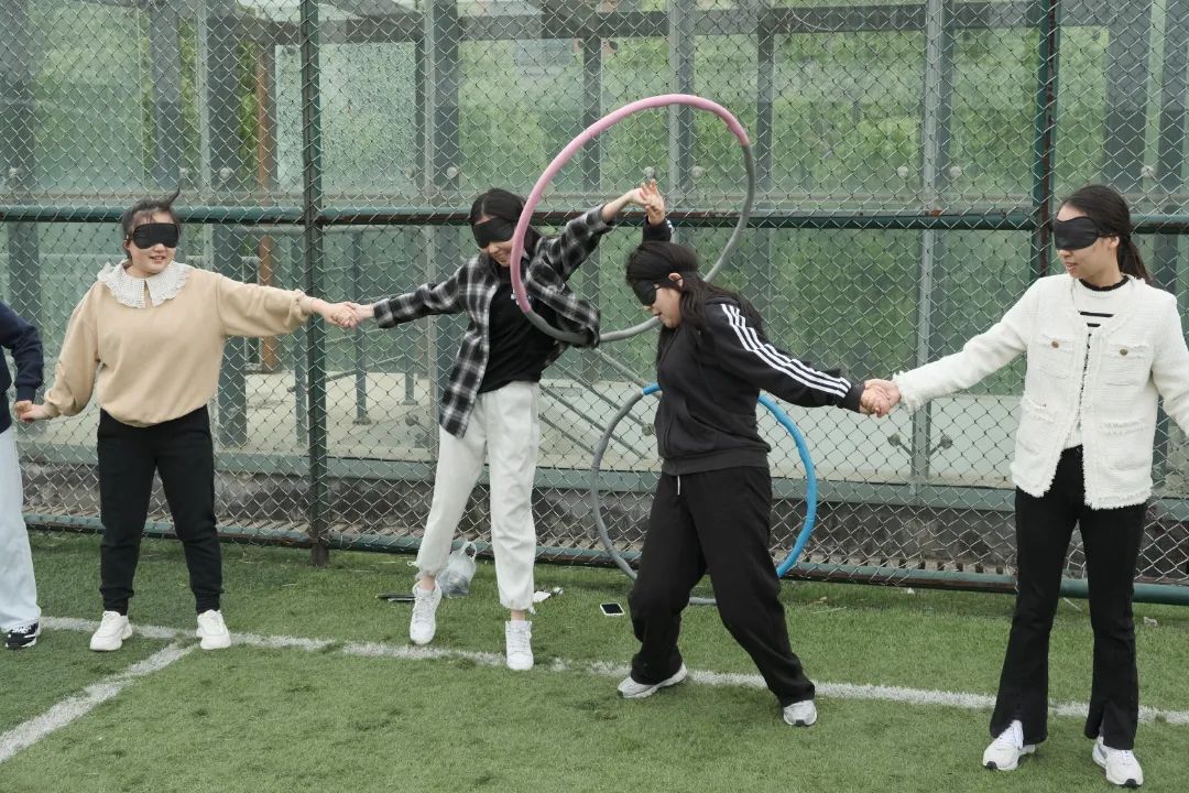 呼啦圈过山车项目一直深受同学们的喜爱,本次运动会新增“蒙眼”难度。面对“天黑”模式,同学们不但毫不畏惧,反而跃跃欲试。手拉手,心连心,传递的不是呼啦圈,而是对彼此的珍重与信任。2021级硕士一班与二班的传递用时仅差2秒,2021级硕士一班险胜一筹。