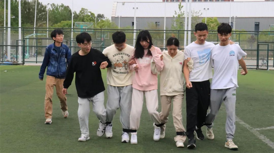 作为趣味运动会的经典项目,六人七足向前冲体现着同学们的与日俱增的默契。一个人可以走得很快,一群人才能走得更远,同脚同心,摩肩接踵,齐头并进,勇攀高峰。最后,2022级硕士二班取得胜利。