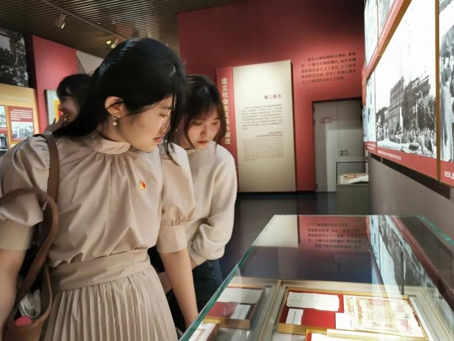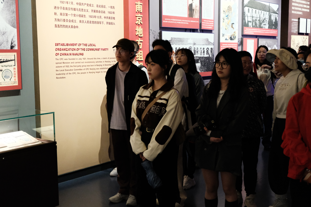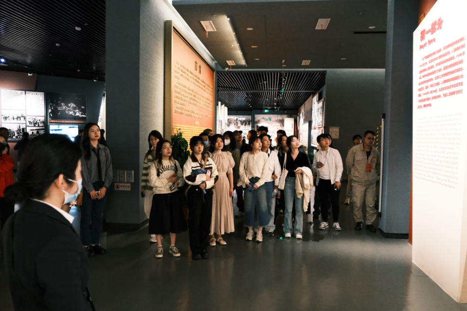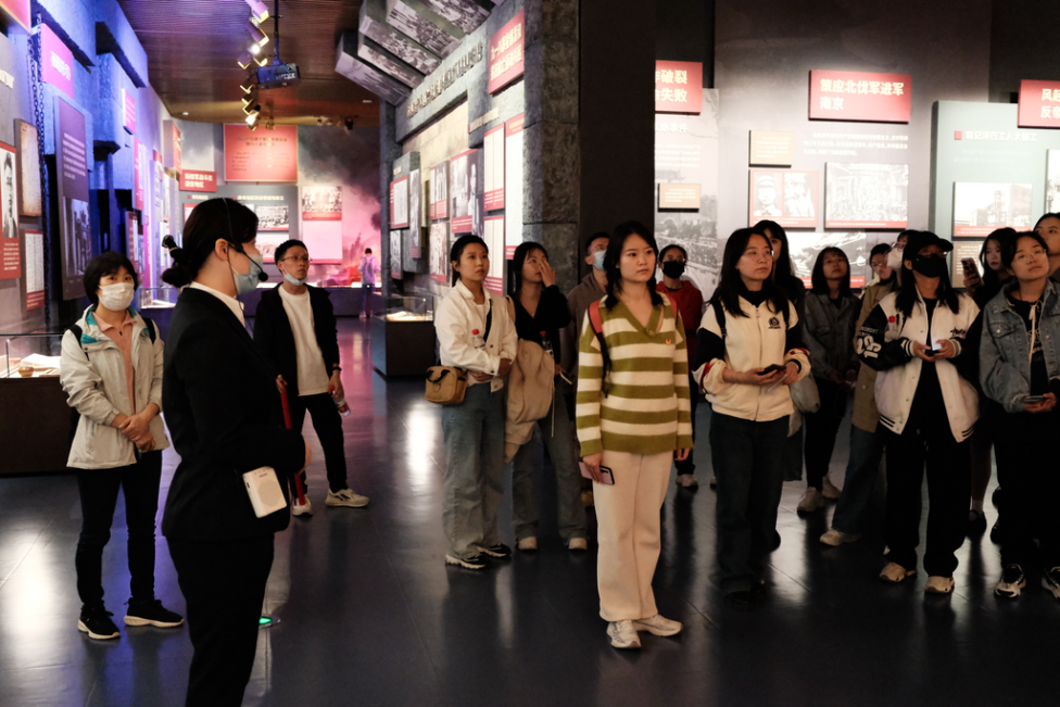 而后,在讲解员的带领下,同学们继续参观了“人间正道是沧桑——中国共产党南京历史展览”。该展览以“不忘初心、牢记使命”为主题,包括了四个部分,分别是:钟山风雨——浴血奋战,夺取新民主主义革命的伟大胜利;石城新生——奋发图强,进行社会主义革命和建设;金陵春潮——奋勇争先,推进中国特色社会主义南京实践;南京奋进——践行嘱托,建设“强富美高”新南京。同学们驻足观看,惊叹于生动形象的场景还原,沉思于一幅幅历史画卷,百年党史,背后是无数革命先烈不怕牺牲、英勇斗争的故事,是对理想的坚守,对我党的忠诚,对人民的担当,是我们不能忘记的历史坐标和精神航向。
