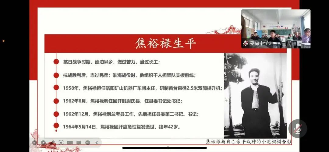 2022级硕士研究生王心雨、曹浩乐和杨琬琼三位同学为妥甸中学的同学们带来了以《学习弘扬焦裕禄精神》为题的精彩课程。