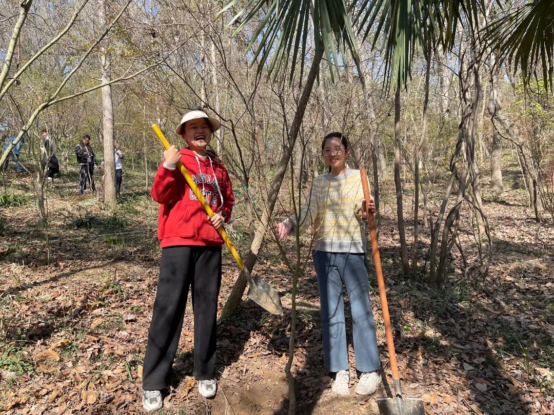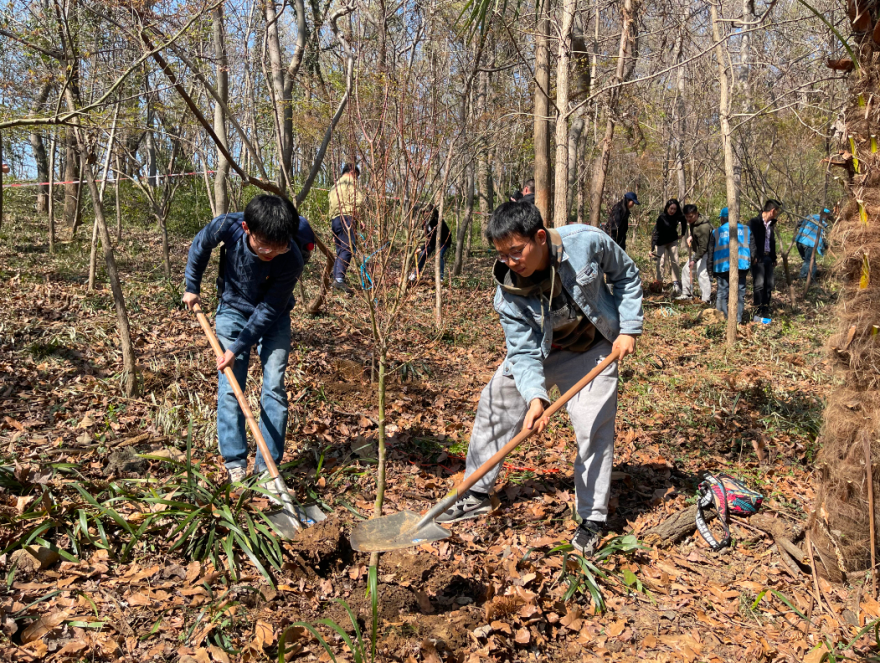 我们的栖霞植树活动,与高效的机械造林相比,似乎贡献微薄。然而真正可贵的,是精神的传承,它在我们心底播种一片希望,让我们明白,漫山绿色红色,都是美丽中国应有的底色。作为青年一代,我们要深刻认识“尊重自然、顺应自然、保护自然”的涵义,坐言起行,应势而动,在未来的工作和生活中,厚植绿色理念,守护生态环境,真正践行习近平总书记“一年接着一年干,一代接着一代干”的殷切期盼,让人与自然和谐共生的现代化理念在华夏大地上结出更丰硕的果实。