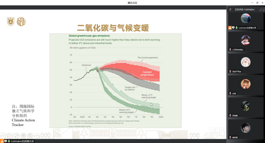 随后,周甫森同学为大家细数近十年来中国生态文明建设的伟大成就:二氧化碳排放量比2012年下降了34.4%,全国地级及以上城市PM2.5平均浓度较2015年下降34.8%,截至2021年森林面积和森林蓄积量连续保持“双增长”等等,为大家徐徐展开了一幅美丽中国画卷。