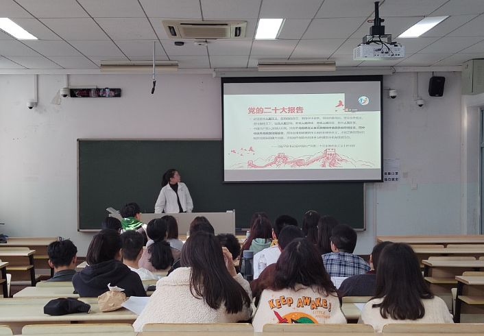 接下来,由支部杨虹、杨婉琼同学作学习党的二十大精神汇报。