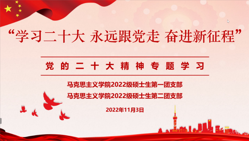 2022级硕士生第一团支部、2022级硕士生第二团支部开展“学习二十大 永远跟党走 奋进新征程”党的二十大精神专题学习活动。本次活动采用线上形式,由2022级硕士生第一团支部书记邵嘉曌主持,幸运飞艇开奖官网