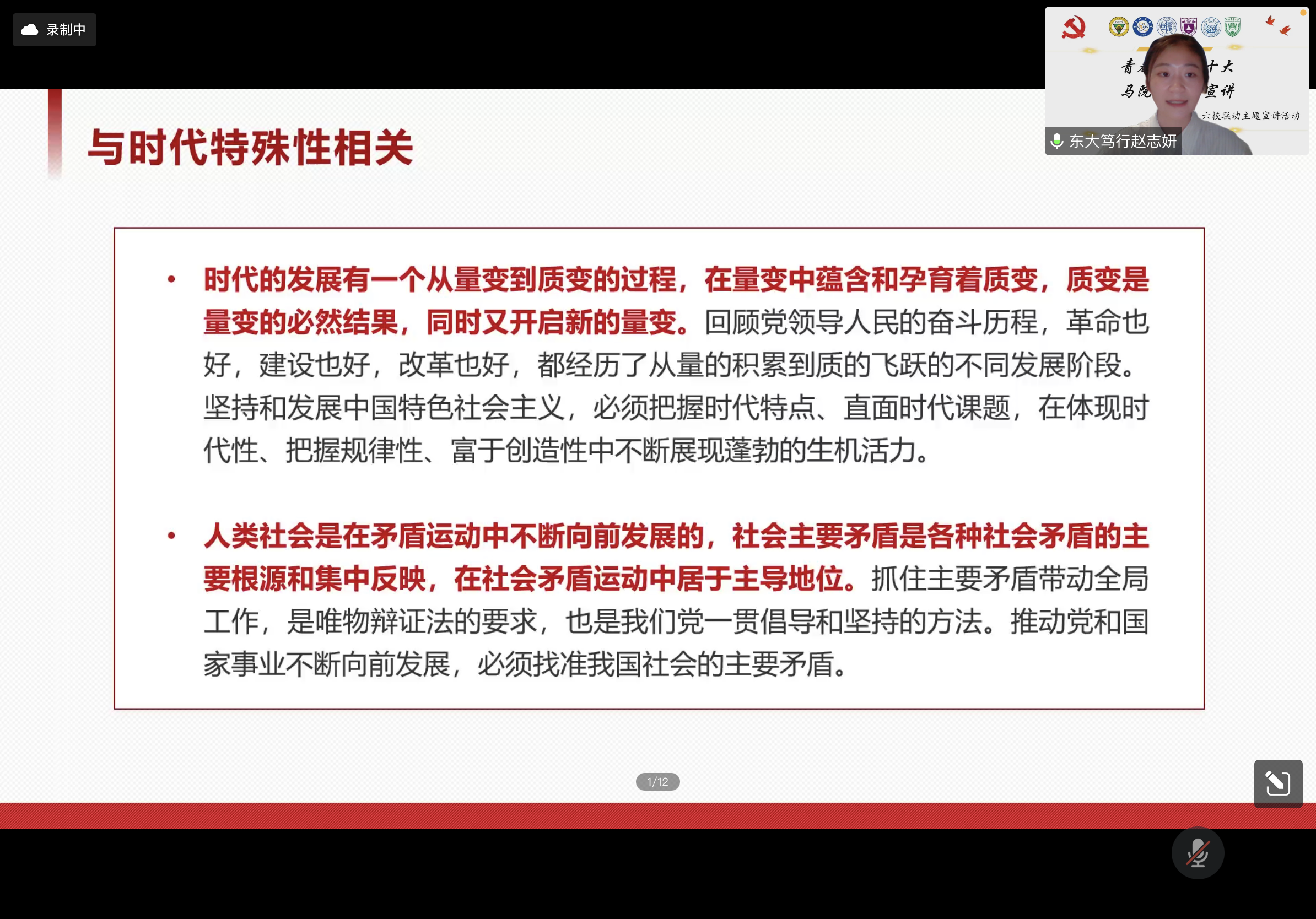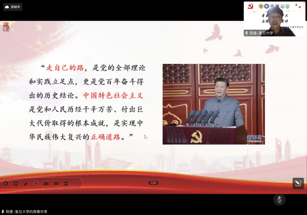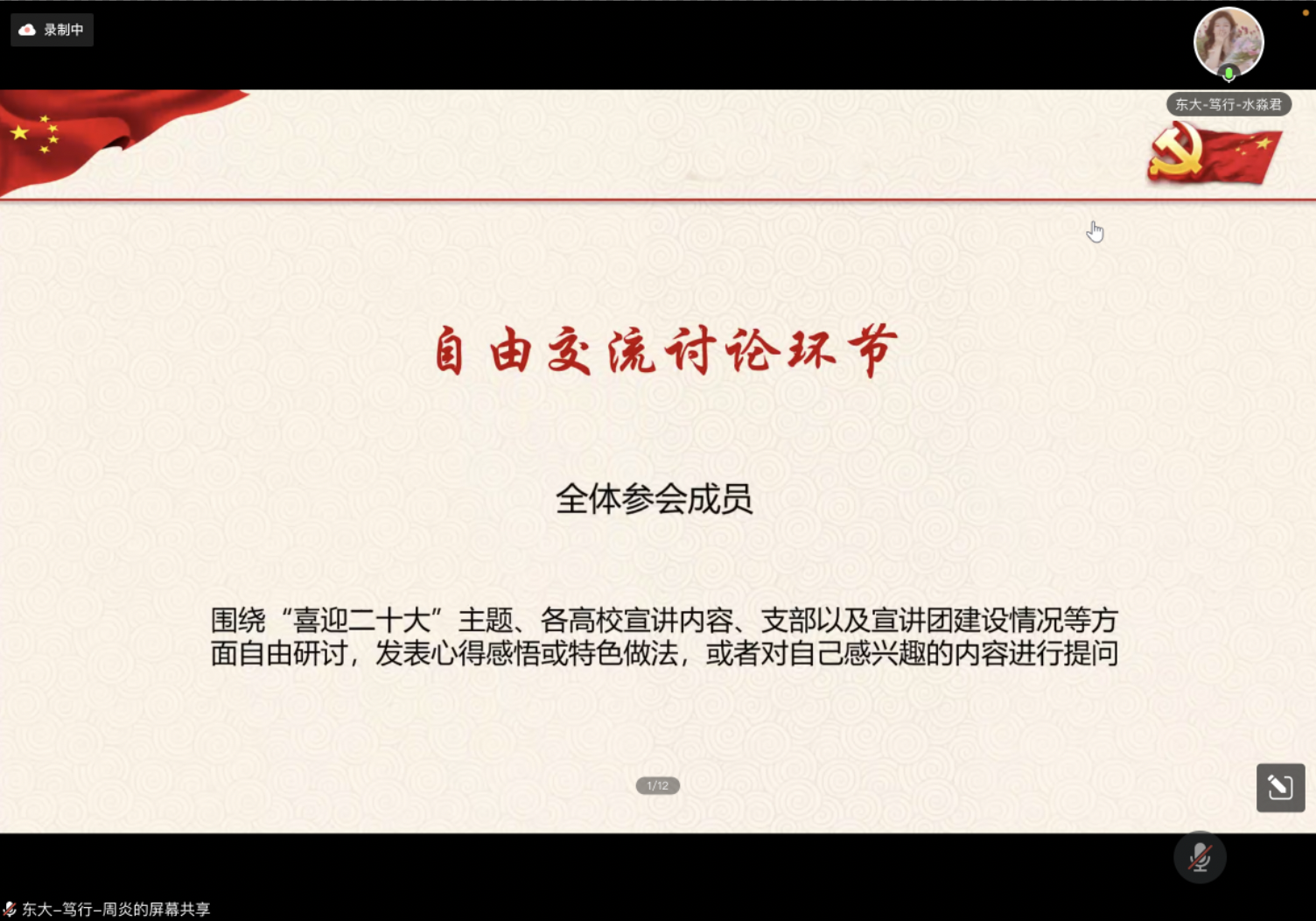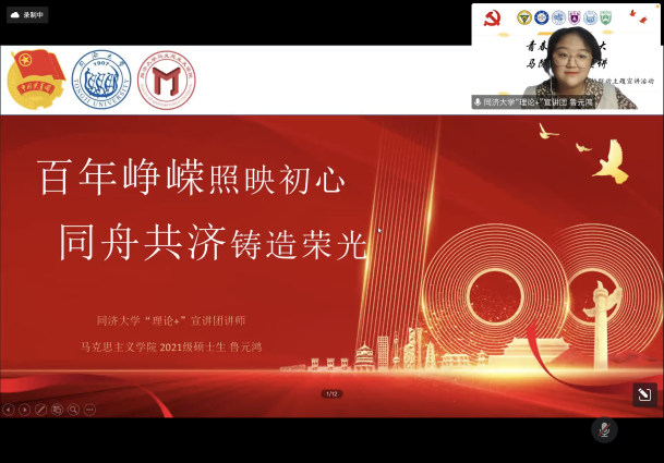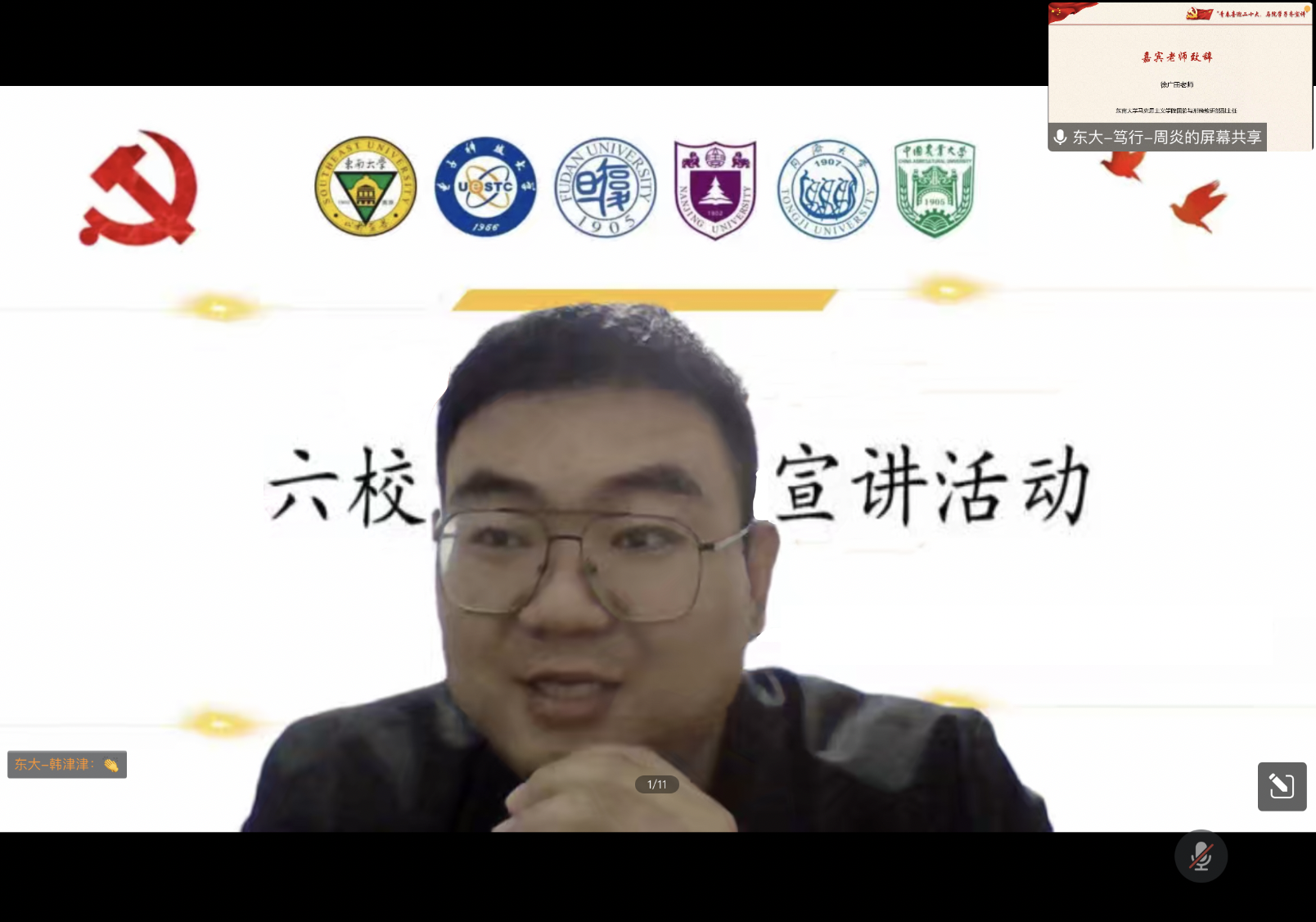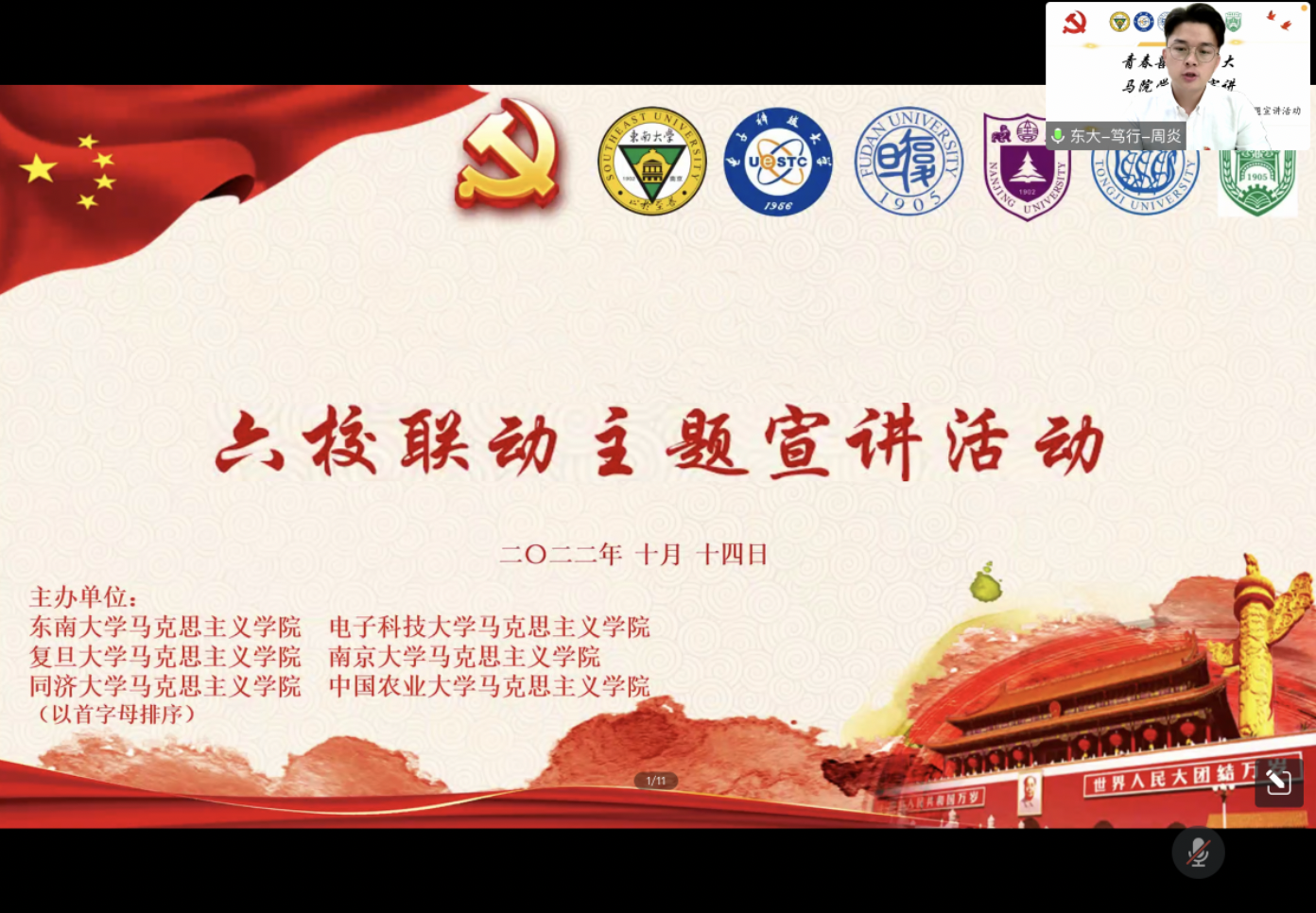 2021级硕士生第二党支部特联合复旦大学、东南大学、同济大学、电子科技大学、中国农业大学马院党支部、宣讲团线上共同举办六校联动主题宣讲活动。