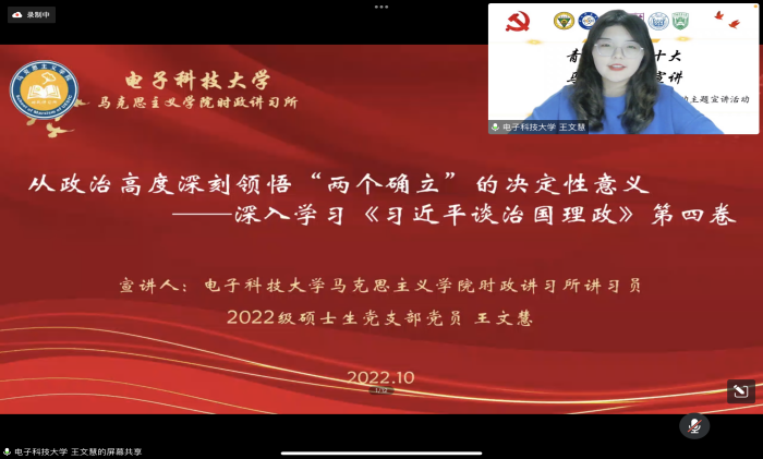 研究生红色宣讲团讲师赵志妍基于对新时代深远意蕴的解读,进行了《喜迎二十大,我们的新时代》主题宣讲;复旦大学幸运飞艇开奖官网