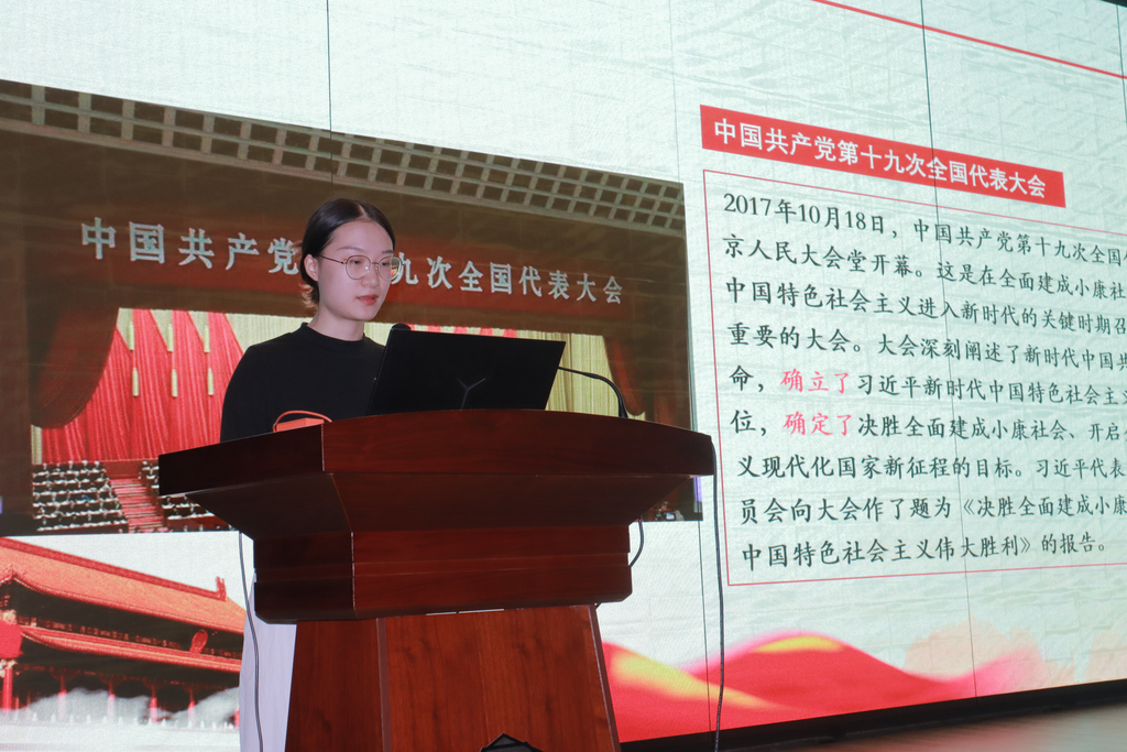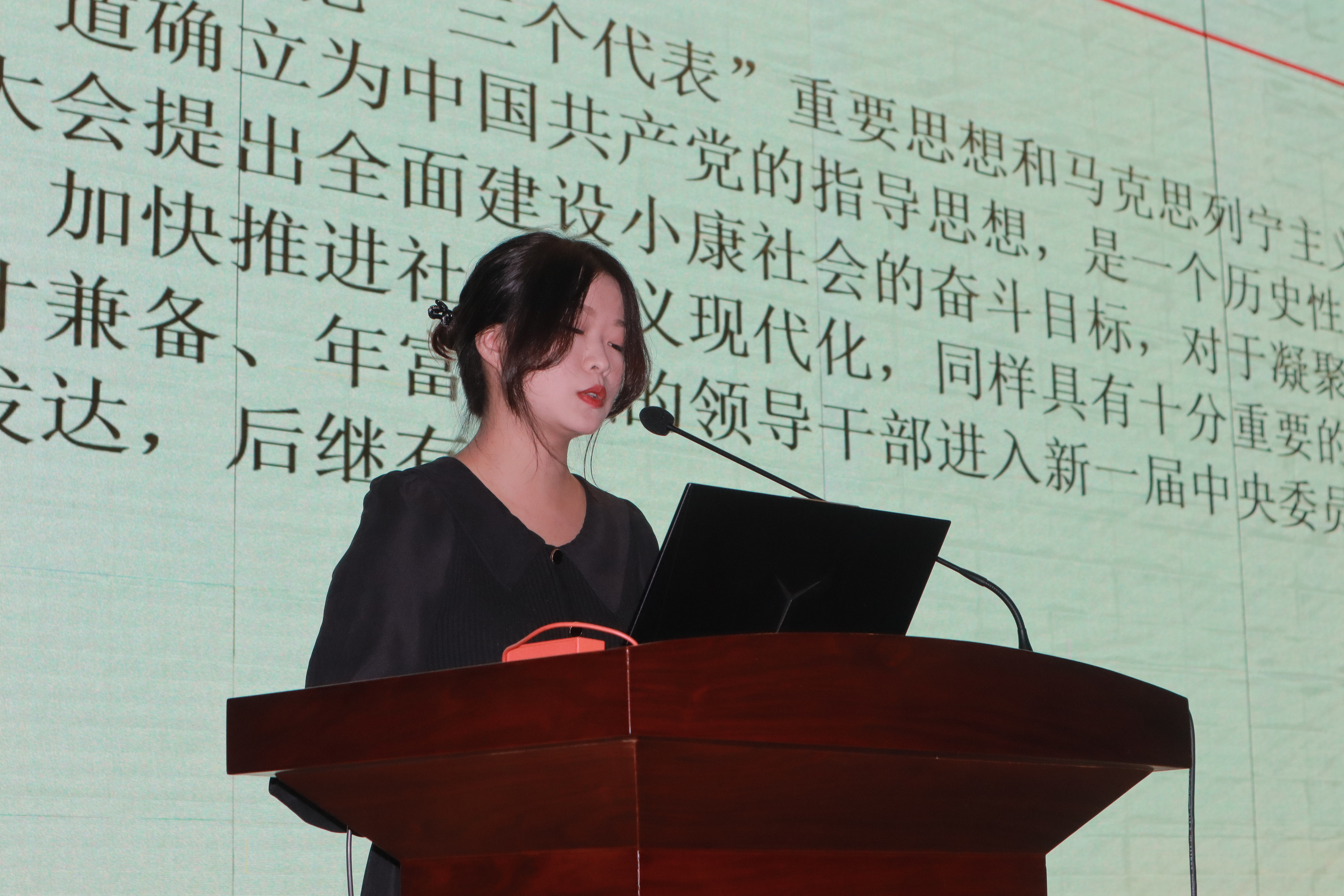 21级硕士生第一党支部的四位成员为大家介绍了党的十六大到十九大。顾静雅同志讲述了党的十六大,是中国共产党在新世纪召开的第一次全国代表大会,也是在我国进入全面建设小康社会、加快推进社会主义现代化的新的发展阶段召开的一次十分重要的代表大会。此次大会把“三个代表”重要思想和马克思列宁主义、毛泽东思想、邓小平理论一道确立为中国共产党的指导思想,是一个历史性贡献,具有划时代的意义。