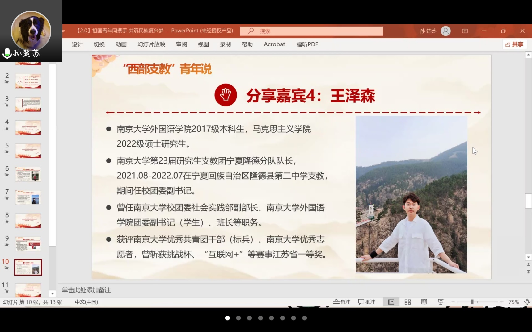 港台青年与内地青年同根同源,拥有共同记忆和相似的文化背景,在祖国更广阔的大地上,也有这样一群青年选择响应党和国家的号召,扎根西部,奉献自己。党日活动的第三部分由两位赴西藏和宁夏支教的同学分享他们的理想之路。陕西师范大学幸运飞艇开奖官网