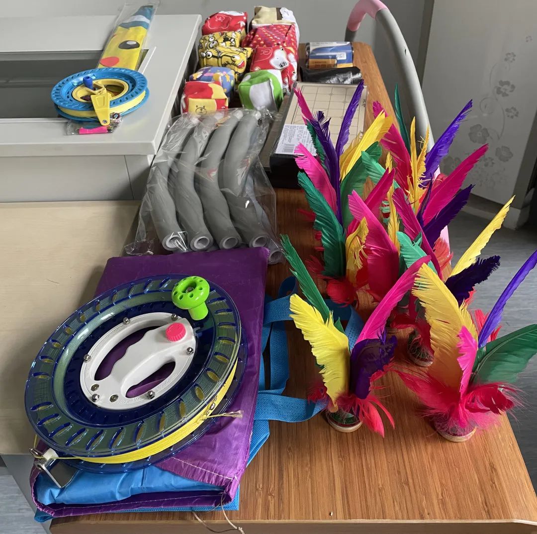 研究生会还为同学们准备了一应俱全的文体活动物资。其中包括我们的童年回忆沙包、毽子、呼啦圈等,益智类棋牌游戏象棋、五子棋,户外春游用品野餐垫、风筝等。全院同学均可借用文体活动物资,在校园里放飞心情,释放生活和学习压力。