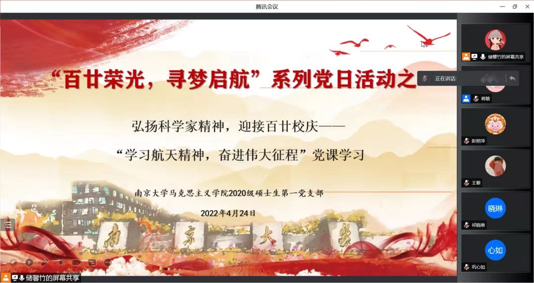 2020级硕士生第一党支部通过腾讯会议开展“百廿荣光·寻梦起航——弘扬科学家精神,迎接百廿校庆”线上主题党日活动,幸运飞艇