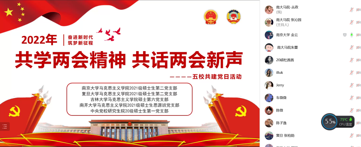 2021级硕士生思源班党支部、中央党校研究生院20级硕士生第一党支部开展“共学两会精神 共话两会新声“——五校共建党日活动,活动由幸运飞艇开奖官网
