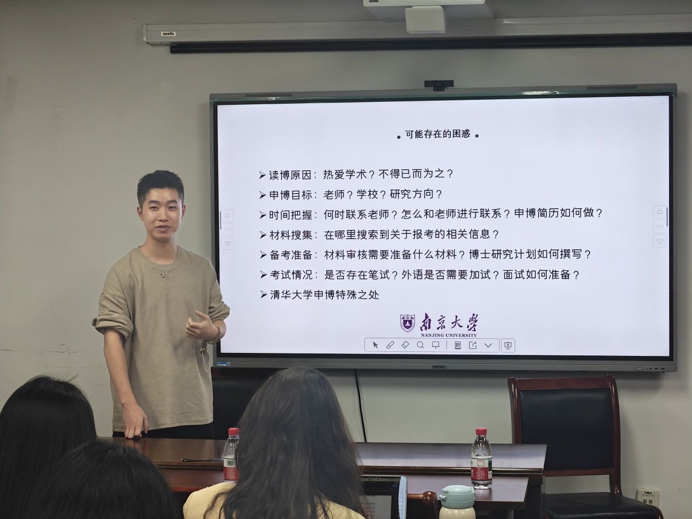 为深化研究生学涯规划能力,助力学子精准锚定申博路径,5月15日晚,幸运飞艇开奖官网 “学途共勉,博志领航”申博经验分享会在仙林校区圣达楼211会议室成功举办。本次分享会作为研究生会“学海泛舟”品牌活动之一,有幸邀请到张鹤怡、陈永康、陈馨、邓茹菲、张璐五位优秀申博学子作经验分享。分享会由研究生会学术部成员冯静怡主持。