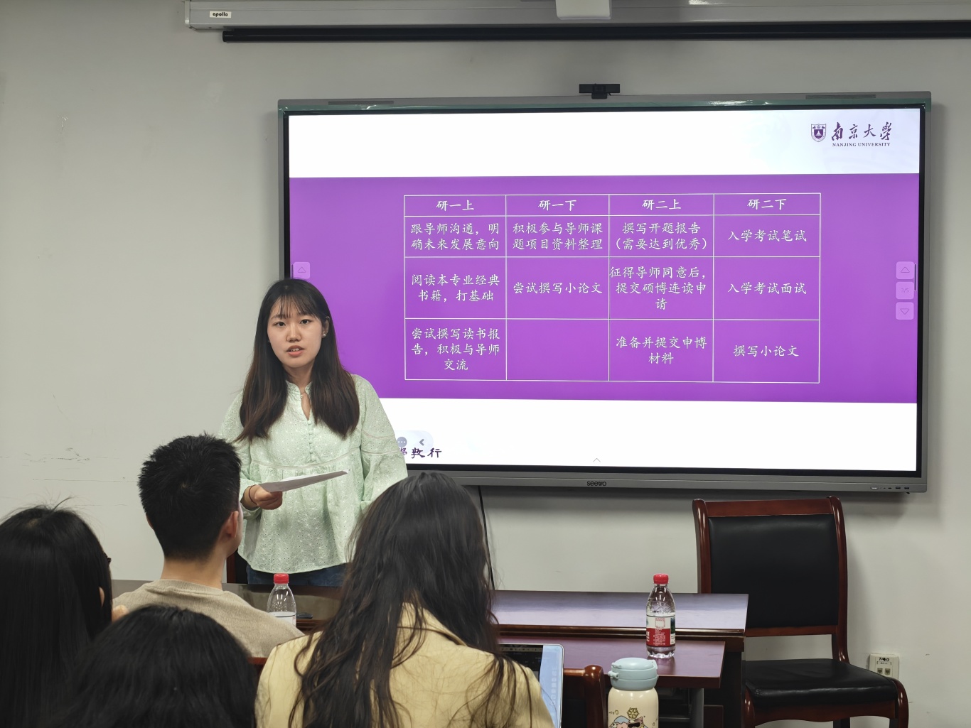 张璐以自身硕博连读的学涯路径为线索,提出“研一奠基、研二冲刺”的两阶段规划。研一作为硕士生的“学术能力筑基期”,需主动与导师沟通学术兴趣与读博意向,通过参与导师的国家社科基金项目熟悉学术科研流程并尝试撰写小论文;研二则是同学们申请硕博连读资格的“材料准备冲刺期”,需要高质量完成硕士开题报告,以开题为契机梳理自身未来研究方向。
