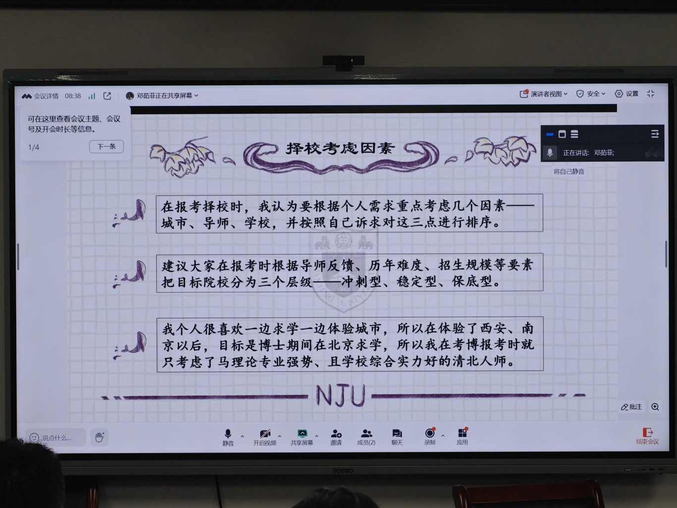 本次分享会从材料准备到备考攻坚的全流程展开深度解析,呈现了一场兼具系统性、实操性与前瞻性的申博经验分享盛宴。心有所向,步履铿锵。愿马院学子以本次分享会为契机,扎实钻研文献、筑牢自身根基,感悟交流经验、掌握笔面技巧,在申博征程中明晰方向、稳步前行。