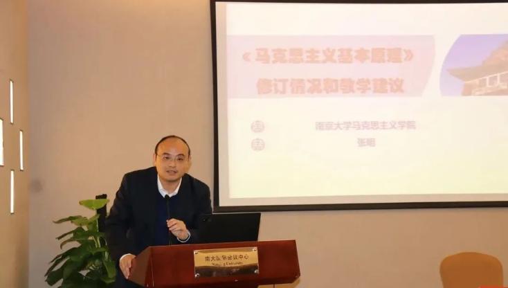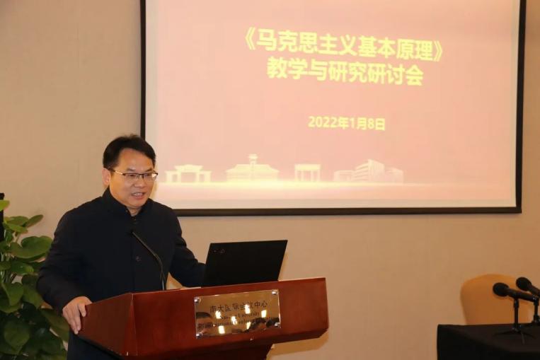 The Seminar on the Teaching and Research of the Basic Principles of Marxism was held as scheduled at the International Conference Center of Nanjing University on January 8, 2022, with the aim of promoting the teaching quality of the course “Basic Principles of Marxism” and improving theoretical research on the basic principles of Marxism in colleges and universities in Jiangsu Province, as well as strengthening the communication among the backbone teachers and researchers specializing in Marxism in Jiangsu province. The seminar was co-sponsored by the School of Marxism at Nanjing University (NJU), the School of Marxism at Nanjing University of Chinese Medicine (NJUCM), the School of Marxism at Nanjing University of Posts and Telecommunications (NJUPT), and the Research and Learning Platform of online academic database CNKI. More than 90 teachers from universities in Jiangsu province attended the event.